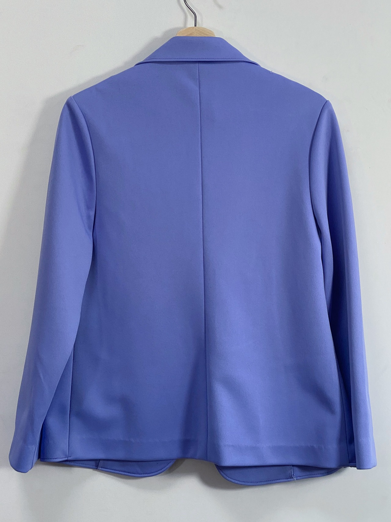 綺麗なパープルカラーのポリエステルテーラードジャケット。